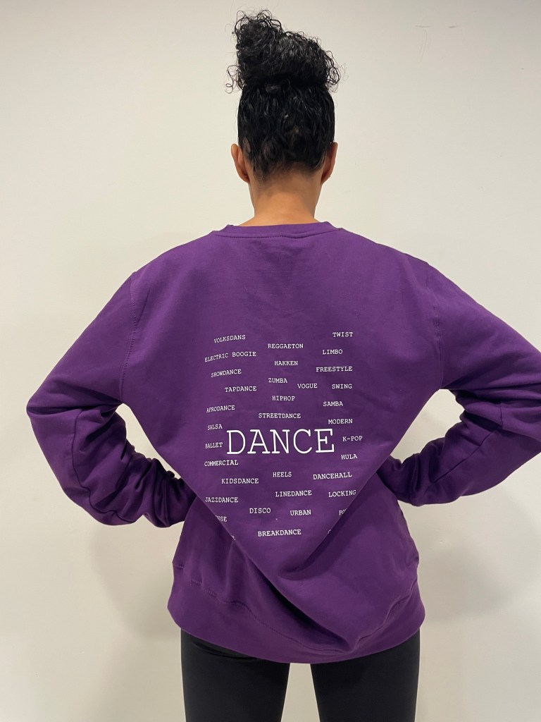 De ontwerpen op de achterkant zijn op elke ZIPPED HOODIE, HOODIE, SWEATER of T-SHIRT te plaatsen. De t-shirts en truien zijn verkrijgbaar in de kleuren paars, zwart, royal blue en fuchsia.